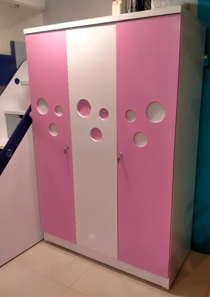 Bring charm, color, and creativity into your child’s bedroom with this Butterfly Design Kids Wardrobe, thoughtfully crafted to inspire joy and imagination. Made from high-quality MDF Lasani, this wardrobe features a smooth pink and white deco finish with charming circular butterfly-inspired cut details. The soft color combination makes it an instant favorite for girls’ bedrooms while blending beautifully with modern kids room décor in Pakistani homes.